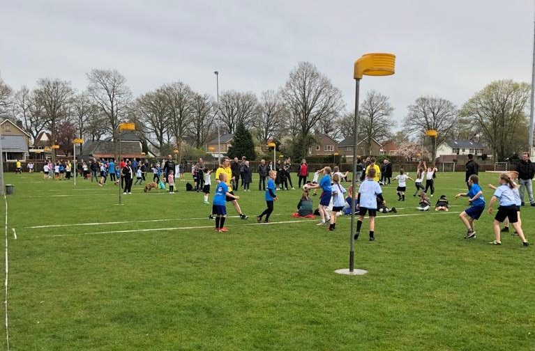 Afgelopen woensdag en donderdag 13 en 14 april was het een drukte van belang op het Herman Koobs schoolkorfbaltoernooi. Na 2 jaar wachten was het weer zo ver: er mocht weer gekorfbald worden!
